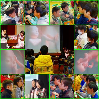 子どもたちは、動画を食い入るように見つめていました。10cmの骨産道を通って生まれてくる命の尊さを感じたようでした。