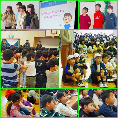 全校集会では、見守り隊の皆さんの紹介を始めました。皆で名前をおぼえて、