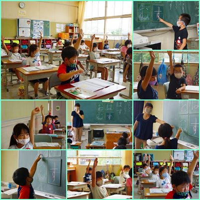 1年生のこのクラスは、担任が1日出張のため留守にしています。1限の書写は、良い姿勢で授業に集中していました。1日頑張って良い子ですごしてくださいね。