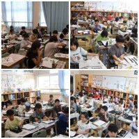 子どもたちが、絵をもとに様々に想像します。昨日勉強した内容から類推する子もいれば、日曜日のサザエさんから発想したのか、歩数の問題として予測する子もいました。どの顔も、前に向けられて集中した様子が感じられました。自分たちが学習するのだという当事者意識は、学力を向上するための重要な要素です。
