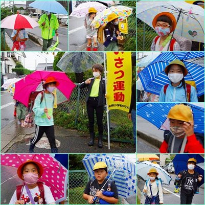 傘をさしての登校でしたから、子どもたちも少し気が沈んでいたところもあったでしょうが、元気のよいあいさつをたくさん聞かせてもらって、こちらも元気になりました。