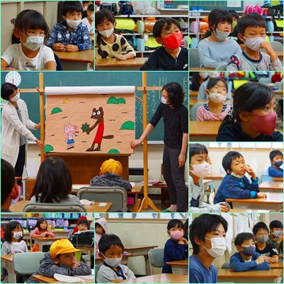 今日は、昨年度に完成した大型紙芝居も登場しました。お昼の放送への登場や大型紙芝居に、歌って聴かせる読み聞かせなど、いつも様々な工夫をしていただき本当にありがとうございます。