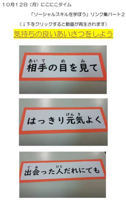 今日の朝、全校で見たにこにこタイムの動画は、こちらのリンク先から見られます。よろしかったら、一度ご覧ください。いつものように、下の画像はリンクがはられていませんので、すぐ下のリンクからご覧ください。