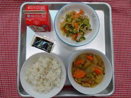 麦ごはん・牛乳・肉じゃが・切り干し大根サラダ・のりの佃煮でした。