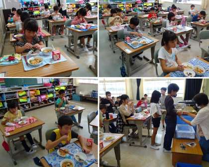 4年生の教室では、のりの佃煮も麦ごはんも両方おかわりをする子が多くいました。