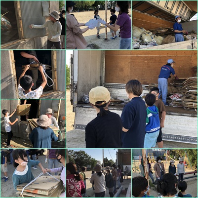 PTA生活部会とエコクリーン委員会で1回目の資源回収を行いました。段ボールや本はプール下の倉庫にきれいに積んであったので、少なめと思っていましたが、いざ、運びだしてみると、トラックいっぱいありました。かなりの重労働でしたが、子どもたちは汗をかきながら、ひたすら運び続けてくれました。