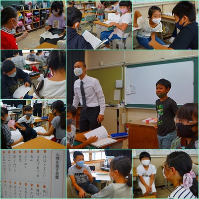 心情を表す言葉 公開日 2020/10/14 更新日 2020/10/14 学校・学年ニュース 5年国語。 心情を表す言葉をジェスチャーで表現しあっていました。なかなか気恥ずかしいようで二人組では照れている子もいましたが、皆の前で進んで表現しようとする子もいて、楽しい雰囲気になりました。