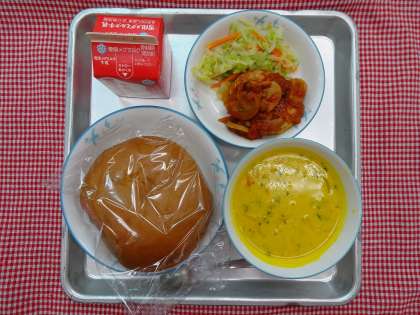 サンドイッチバンズパン・牛乳・ハンバーグのきのこソースかけ・彩りキャベツでした。