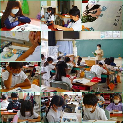 挿絵を見て、担任のお話を聞いていました。「せかい一の話」という題名でした。文字を追うのでなく、挿絵を見ながら物語を楽しむのもなかなか良いものです。