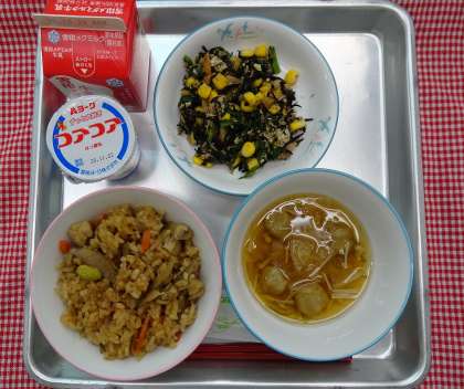 とりめし・牛乳・つみれ汁・千草あえ・ヨーグルトでした。