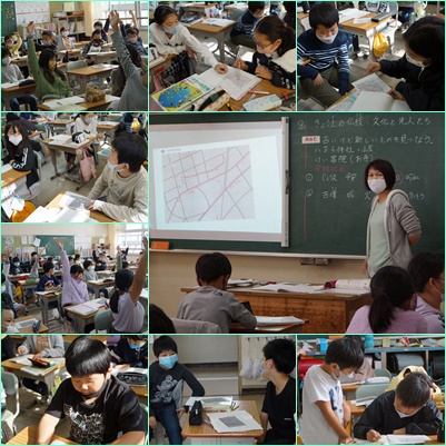 4年生の社会科では身近な歴史を学習していました。クイズ形式で、長根小付近の史跡をあてたり、どの道がにぎわっていたのか考えたりしました。「今村城があったから、この通りがにぎわっていたんじゃないのかな?」「慶昌院に人が集まってきたのでは?」いろいろな理由がでてきました。