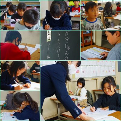 教科担任の指示を聞いて、静かに待っていた子どもたちの手が再び動き始めます。とても落ち着いて学ぶ姿勢と正しい鉛筆の持ち方が立派でした。