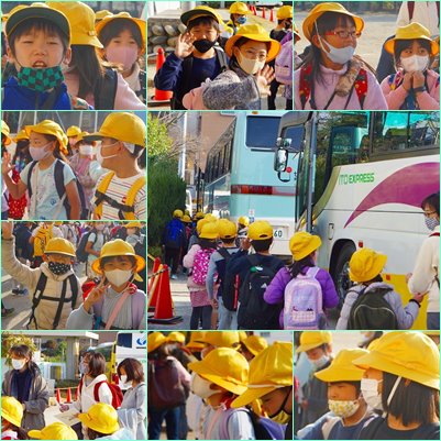 密を避けるために、3台のバスで1クラスずつ、余裕をもって乗りました。また、ボランティアの皆さんが、クラスにお一人ずつ付いていただけています。ありがたいことです。