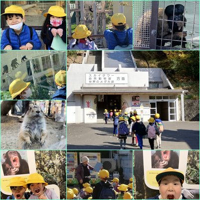 かわいい動物たちと記念写真です。フクロテナガザルのケイジ君は、例の声で叫びまくっていたそうです。子どもたちは大喜びです。