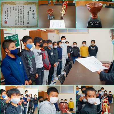 長根JBCは先日、坂石材杯の決勝戦に臨み、見事に優勝しました。主催者の会社にちなみ、優勝カップは石でできた大変重厚なものでした。校長室での表彰を受けるのも3回目となり、選手諸君には常に優勝を争うチームとしての風格が漂っていました。