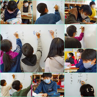 出された漢字の問題をノートに書いていました。本当の漢字テストとは違うので子どもたちも少しリラックスしていました。