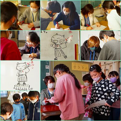 ホワイトボードには、ササッと描かれた「ねこ丸」がいました。デザインを考えた担任が描いたものです。ねこSAPOのマークとともに、こちらもよろしくお願いします。