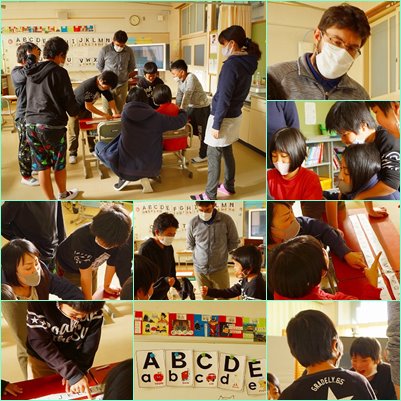 ふれあい学級では、英語でじゃんけんをしながらアルファベットを指でたどるゲームをしていました。大変盛り上がって楽しそうでした。子どもたちの勢いに、ALTのT先生もたじたじでした。