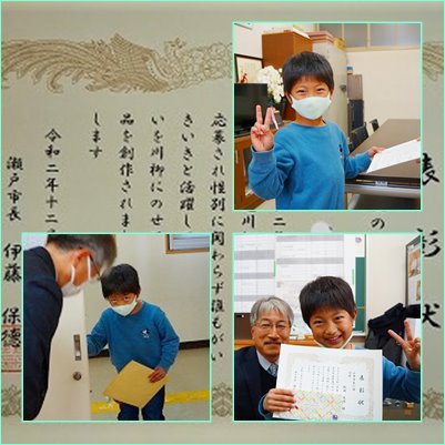 瀬戸市男女共同参画推進川柳コンクールにおいて、佳作に選ばれた1年生のMさんを表彰しました。1年生ながら、大変上手に賞状を受け取ることができました。