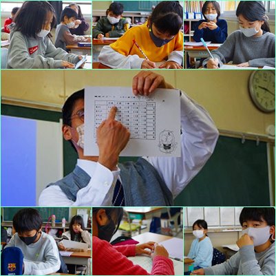 3−1で、体育で使う縄跳びカードの使い方の説明を受けていました。自分が目指すランクをすでに決めて書き込み、やる気満々の様子でした。