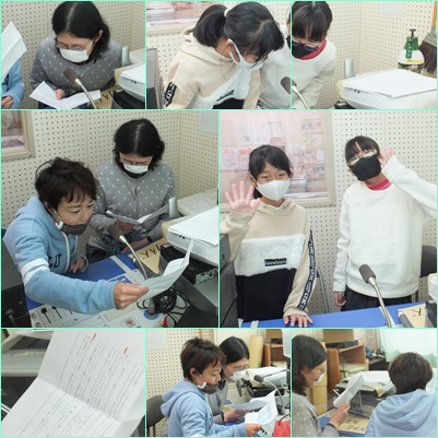 今日のもぐもぐヌーンタイムは葉っぱの会の方にお越しいただきました。放送委員もすっかり慣れ、スムーズな進行で、お二人を紹介してくれました。今日のお話は、オリジナルの(葉っぱの会の方が作ってくださった)お話でした。