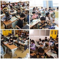 教科書を準備し、ノートを開き、名前を書くと、皆すっと背筋を伸ばしてよい姿勢で座って次の指示を待ちます。鉛筆の持ち方も鉛筆サポーターのおかげで正しくもてる子が増えてきました。