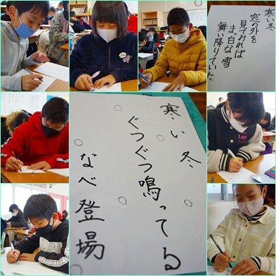 「五感で味わったことをもとに俳句・短歌を作ろう」というのがこの時間のテーマでした。様子が思い浮かび、思わず食欲が沸き起こる歌や昨日降った雪を早朝に見たときの様子を歌ったものなど、様々な作品ができあがっていました。