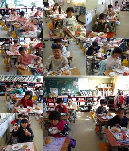 パンにポテトサラダをのせて食べている子もいて、楽しく給食を食べている様子でした。