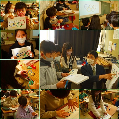 キレイに円を描き、色の重なりかたに注意して、作成していました。来年のオリンピックが待ち遠しいですね。
