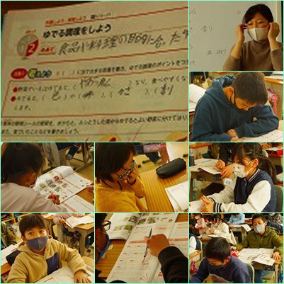 野菜のゆで方について学習していました。いろいろな野菜がありますが、「水からゆでるのでしょうか、お湯からでしょうか」の問いで盛り上がりました。「2問しかあってなかった」という子もいて、驚きの結果でした。今日、学んだことをいかして、家でもお手伝いをしてくださいね。