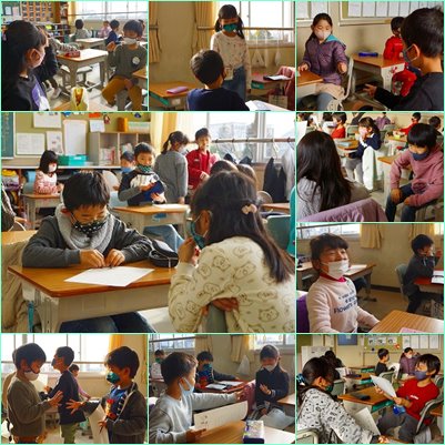 1年生は、最初にどんな答え方をすると相手がどんな気持ちになるかを相談したうえで練習を始めていました。