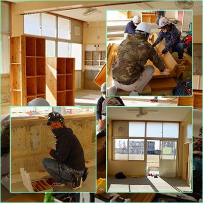 ふれあい教室にロッカーが運び込まれました。設置のために大勢の業者さんが作業に取り掛かっておられました。家具が入ったら、この後はホワイトボードや掲示板を取り付け、長尺シートという床材を貼り付けることになりそうです。