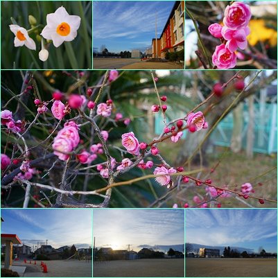 名古屋では梅の開花宣言があったそうです。長根小学校では、2週前から咲き始めた梅が良い感じに咲いています。
