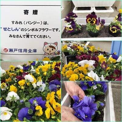 瀬戸信用金庫様からパンジーの苗をたくさんいただきました。プランターに植え、大切に育てたいと思います。ありがとうございました。