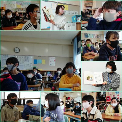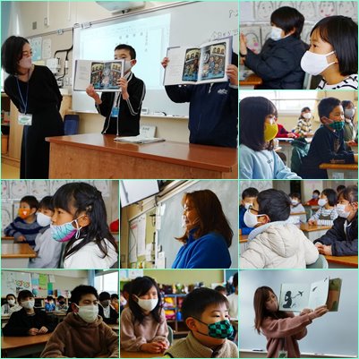 5年生の教室では、参加型の読み聞かせが行われていました。同じ絵本の英語版と日本語版の読み聞かせでした。