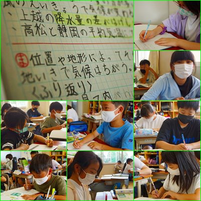 日本の各地域ごとの気候の特色についてまとめていました。これで、次は確かめのためのテストが行われるということでしょうか。皆さん、がんばりましょう。