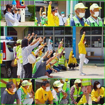 最後には、自治会長さんの合図で、声をそろえて「なっち!(長根連区のキャラクター)」と言いながら、こぶしを突き上げました。