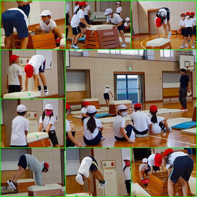 体育館で、跳び箱の練習をしていました。跳び箱は、手をつくときの動作にまず恐怖感が伴います。次に、降りる際に顔から先に降りていくイメージの動作に恐怖感が伴います。そのそれぞれの練習を繰り返し行うことで恐怖感をなくし、上手に跳べるようになっていきます。