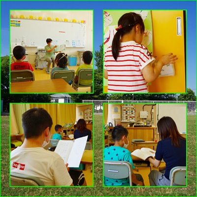ふれあい学級の様子です。担任に読み聞かせをしてもらって、楽しそうに笑っている子たち、自分で音読練習に取り組む子、担任といっしょに音読練習をする子、これから自分がする練習のカードを所定の場所に入れている子、それぞれがそれぞれの課題を意識してよく頑張っています。