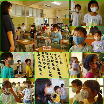 マスクからお鼻が出ていないかを確かめた後、小さな声で練習しました。この後、1番の歌詞を覚えているか、チェックをします。テストですが、緊張感よりもウキウキ感が大きいようです。