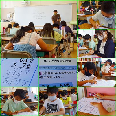 小数のかけ算のテストです。この単元では、自分で課題を作り、同じ課題をもつ子どうしで共同で学習を進める形態をとって取り組んできました。学習の効果は点数にあらわれるでしょうか。楽しみです。