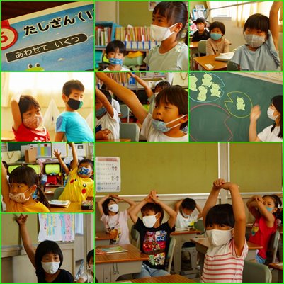 あわせて いくつ 公開日 2021/06/11 更新日 2021/06/11 学校・学年ニュース 1−2算数。 ハスの葉っぱに乗ったかえるの数を数えてたし算をしていました。元気よく手が挙がり、同じ意見のときには手で丸を作っていました。