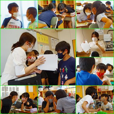 伝言ゲームに取り組んでいました。皆ノリノリで目を輝かせて英語に親しんでいました。興奮しすぎない、ちょうどよいテンションの高さが心地よいです。
