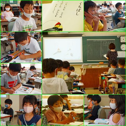 きつつきのくちばしの様子やえさの取り方を教科書から読み取り、キーワードをノートに書いたのち、その様子を絵にして描いていました。鋭いくちばしや鮮やかな赤色の頭部などをノートいっぱいに描いていました。