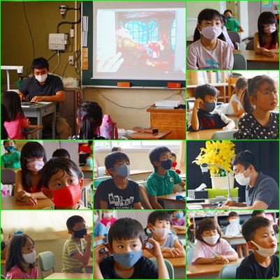 もう全部ビデオを見てしまったクラスは、担任が書画カメラを使って読み聞かせを行っていました。