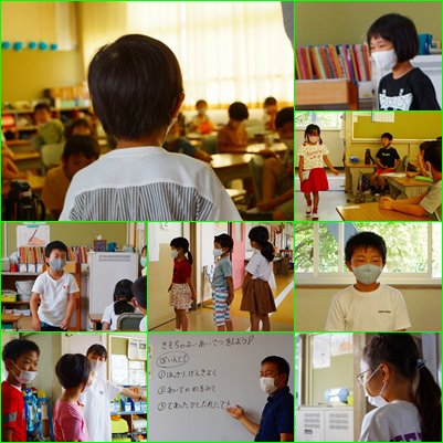 今日のにこにこタイムは、朝教室に入る際のあいさつの練習です。入っていく方も、迎える方も練習をしていました。