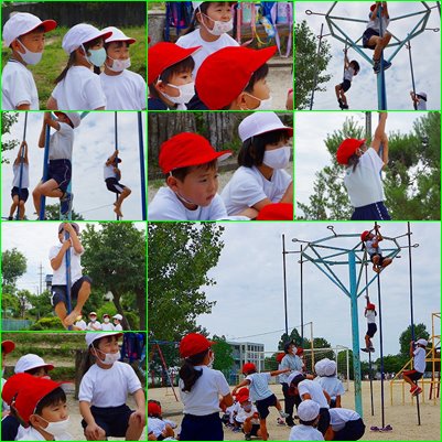 順番に上り棒にのぼっていました。ぐいぐいと高いところまでのぼっていきます。クラスメートの「ガンバレー!」の応援を受けて、さらに張り切っていました。