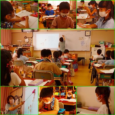 こちらは2組の1時間先の授業のようです。言葉探しゲームを自分たちでするために、ノートに線を入れて、マスを作っていました。