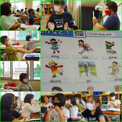 Long time no see 公開日 2021/09/08 更新日 2021/09/08 学校・学年ニュース 5の2外国語。 お久しぶりのALTのT先生に会えました。今日は、動作を表す単語についてジェスチャーを入れて学んでいました。
