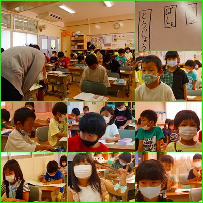 授業の終わりの時間が来ると、合図に合わせてきちんと挨拶できていました。1年生もずいぶん成長しました。